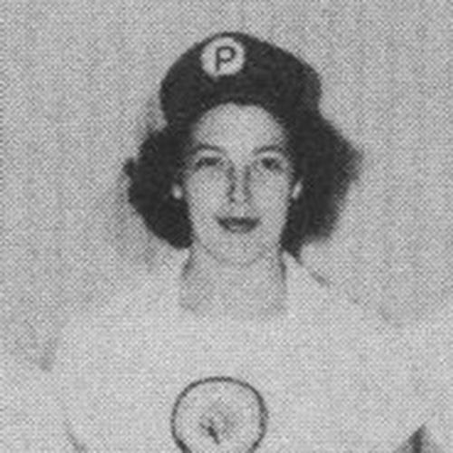 All-American Girls Professional Baseball League ®Back, L-R: Elizabeth Dailey (Chaperone), Twila Shively, Irene "Pepper" Kerwin, June Schofield, Dorothy Mueller, Rita Meyer, Mary Reynolds, Leo Schrall (Manager).